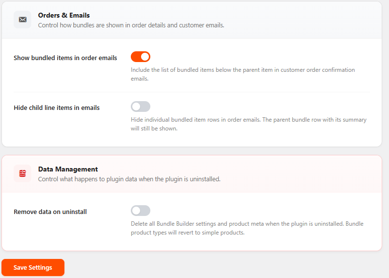 With seamless WooCommerce integration, the builder supports three pricing modes, real-time stock checking, and proper parent-child cart handling — while admins get full control over appearance, cart behavior, and order display from a centralized settings page.